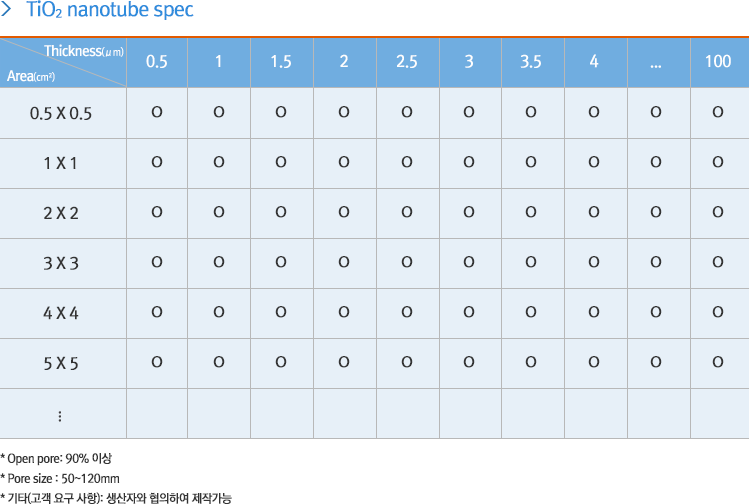- 다양한 Ti 구조물 및 면적에 제작 가능.